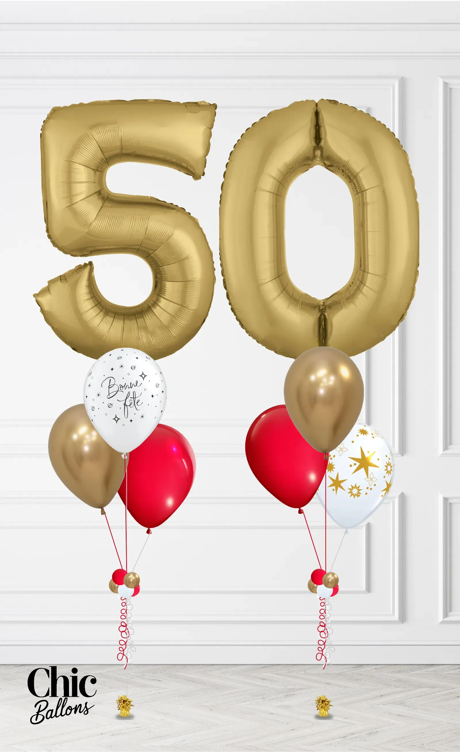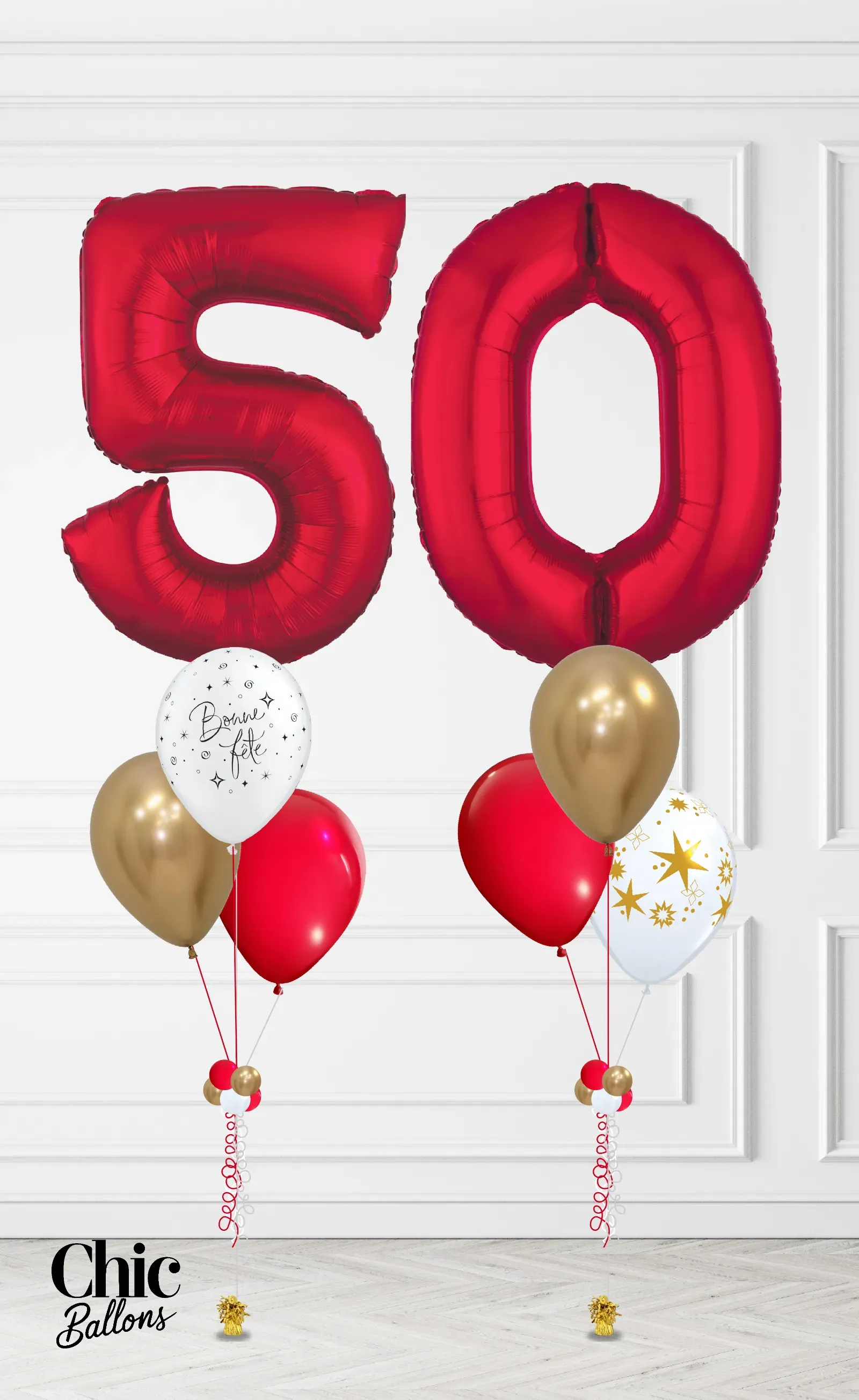 Apportez une touche de sophistication à votre événement avec cet ensemble de deux bouquets élégants dans les teintes de rouge, noir et argent métallisé. Chaque bouquet comprend un chiffre de votre choix pour marquer un âge ou une année spéciale, accompagné de trois ballons latex dans des tons de rouge et noir. Idéal pour célébrer des anniversaires ou des moments mémorables avec une ambiance chic et moderne !