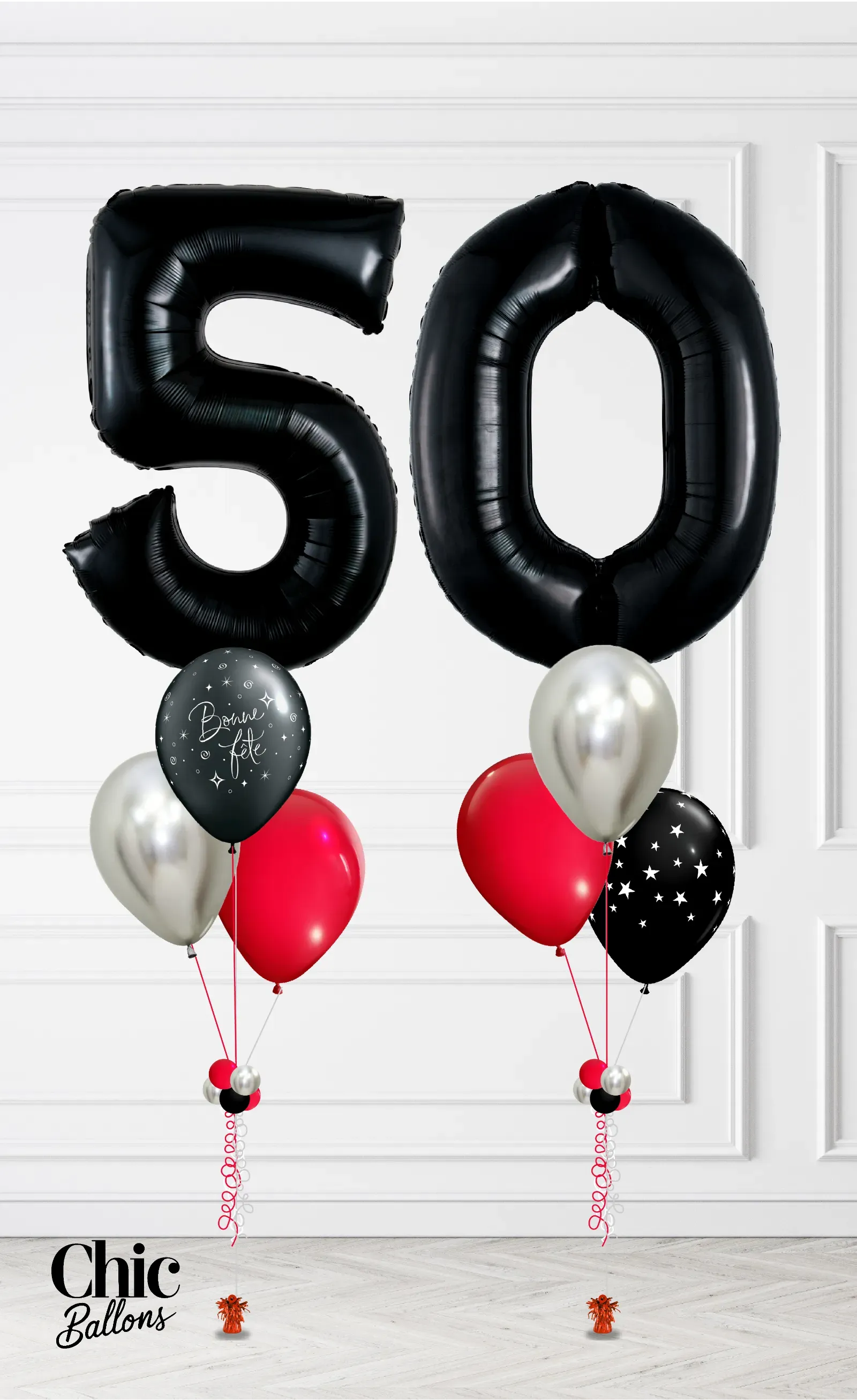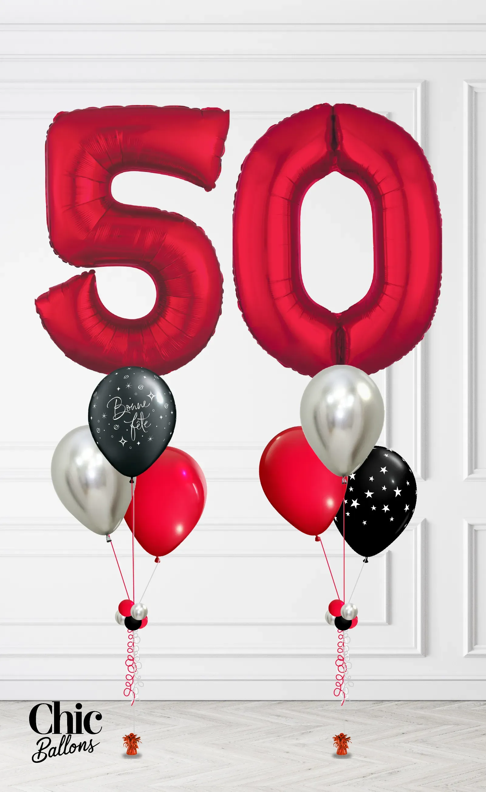 Apportez une touche de sophistication à votre événement avec cet ensemble de deux bouquets élégants dans les teintes de rouge, noir et argent métallisé. Chaque bouquet comprend un chiffre de votre choix pour marquer un âge ou une année spéciale, accompagné de trois ballons latex dans des tons de rouge et noir. Idéal pour célébrer des anniversaires ou des moments mémorables avec une ambiance chic et moderne !