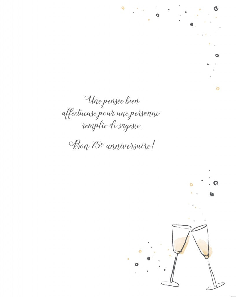 TEXTE À L’INTÉRIEUR: UNE PENSÉE BIEN AFFECTUEUSE POUR UNE PERSONNE REMPLIE DE SAGESSE. BON 75E ANNIVERSAIRE!