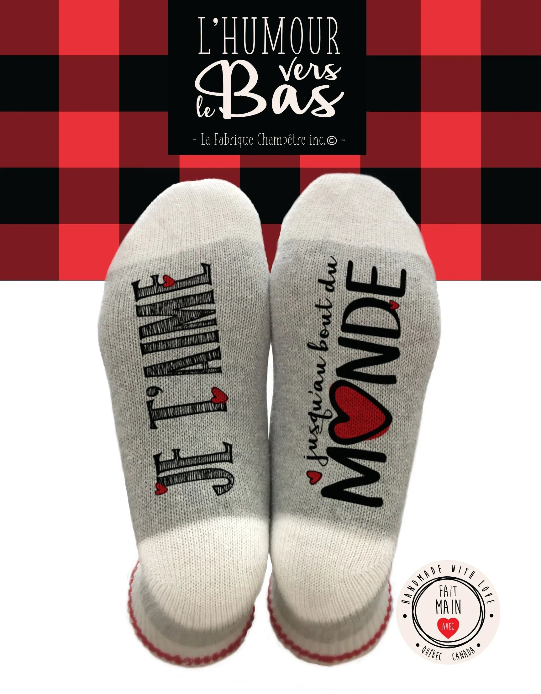 Bas de laine "Je t'aime jusqu'au bout du monde"