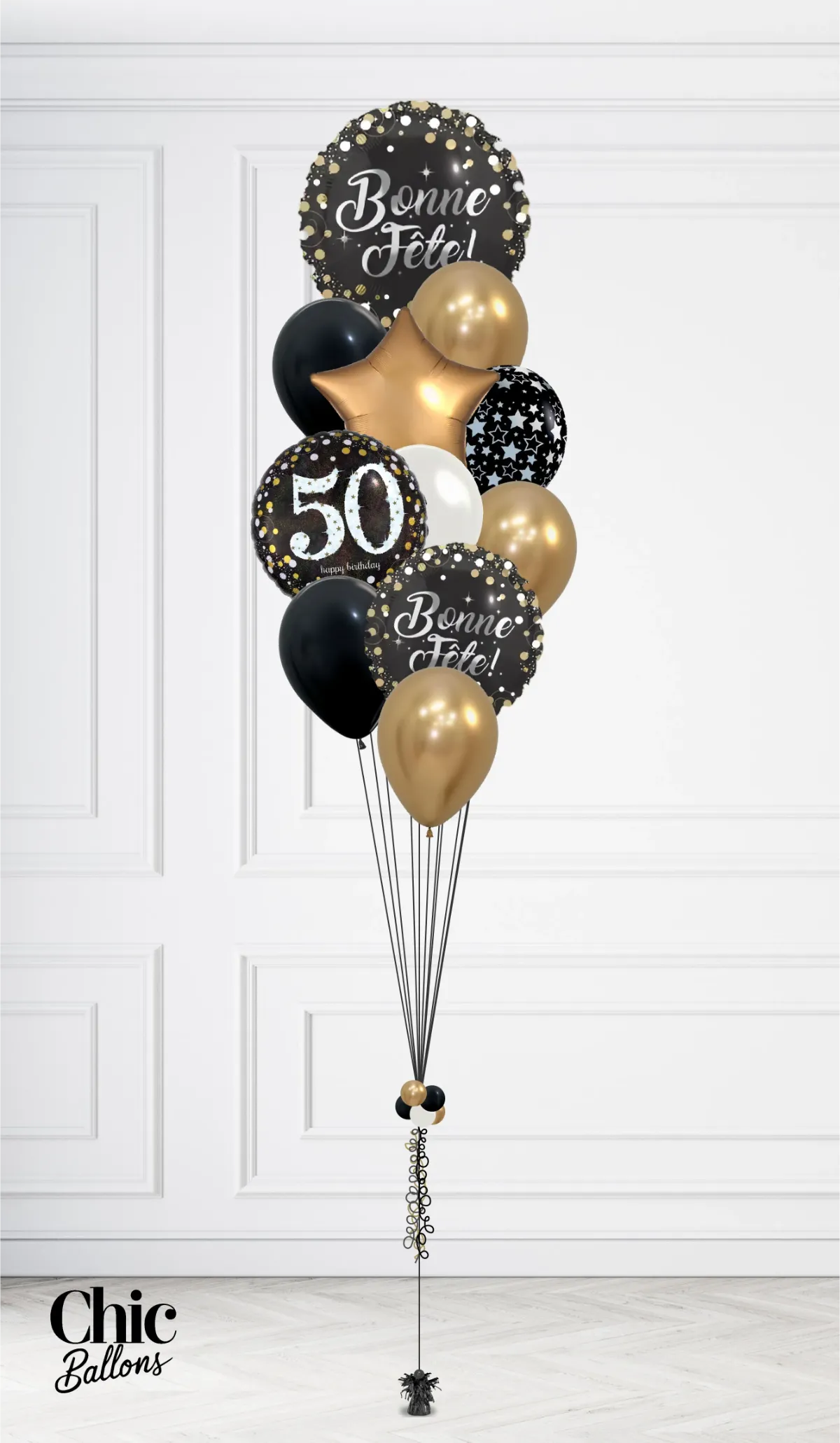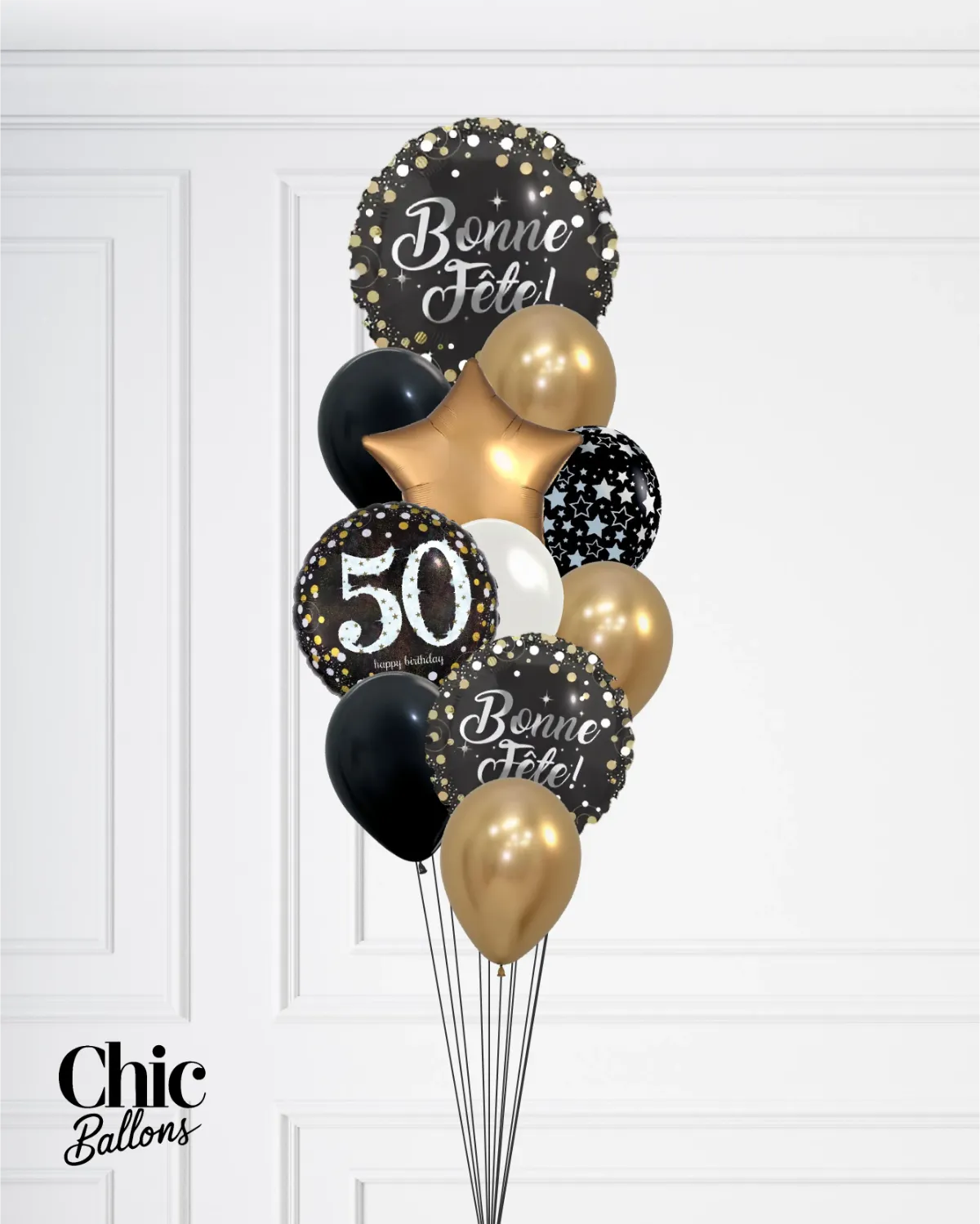 Bouquet de ballons - Bonne fête avec âge - Noir et or