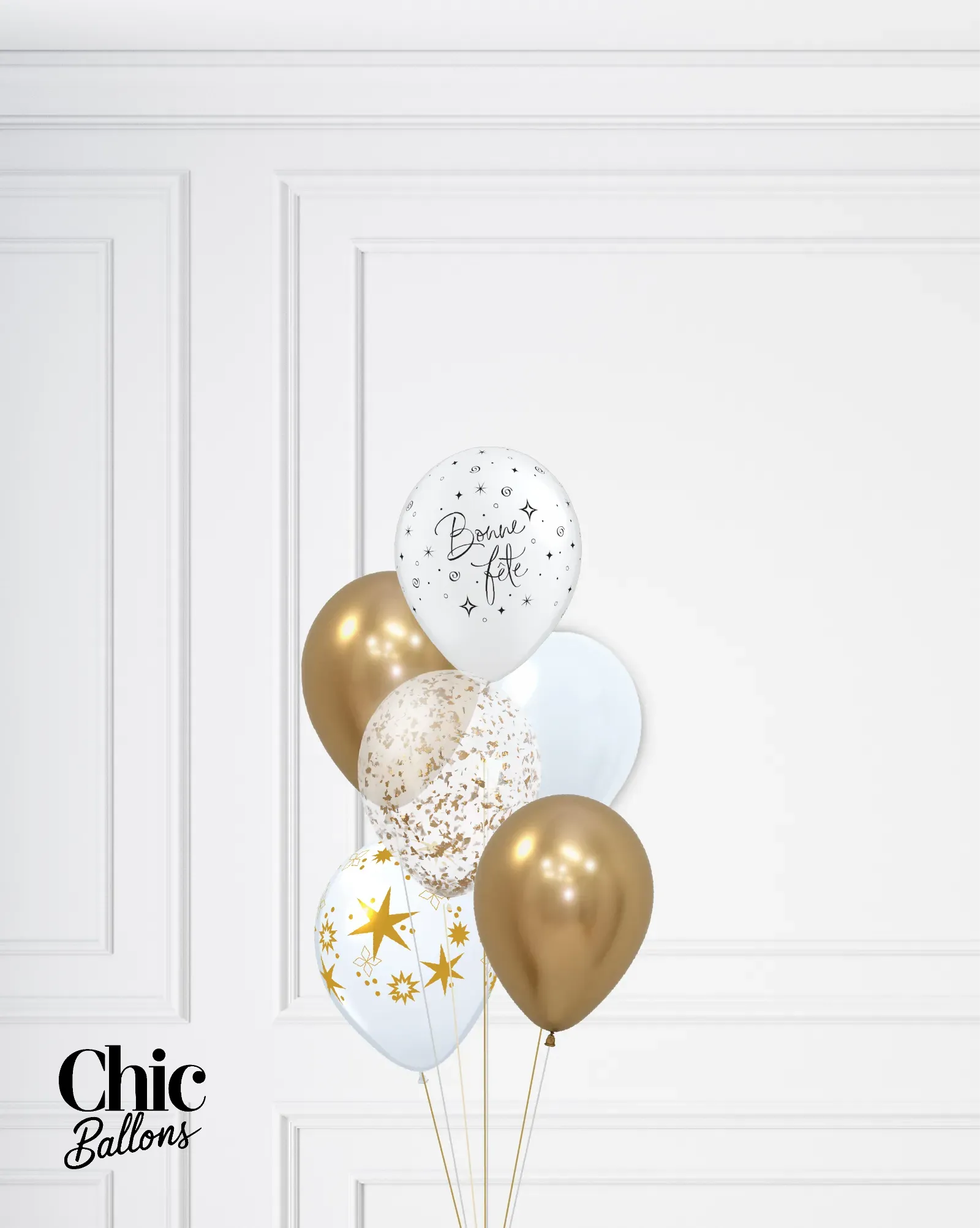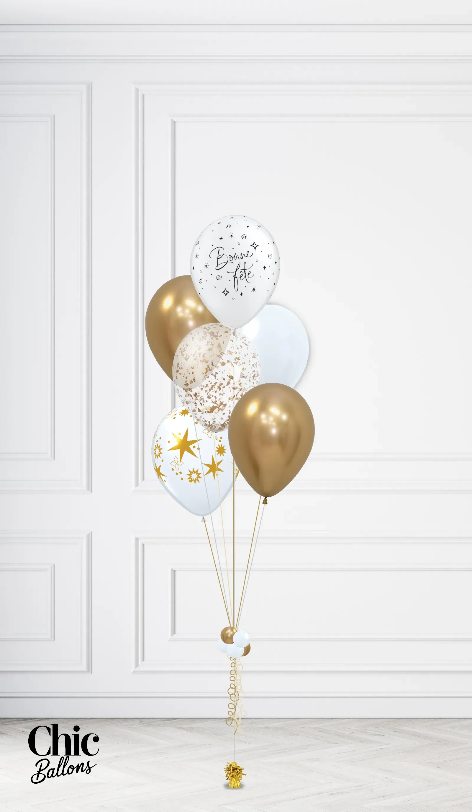 Apportez une touche élégante et éclatante à vos événements avec ce magnifique bouquet de ballons confettis ! Idéal pour créer une ambiance raffinée, il associe des ballons dorés, blancs et à confettis pour une décoration spectaculaire qui ne manquera pas de faire briller votre fête !