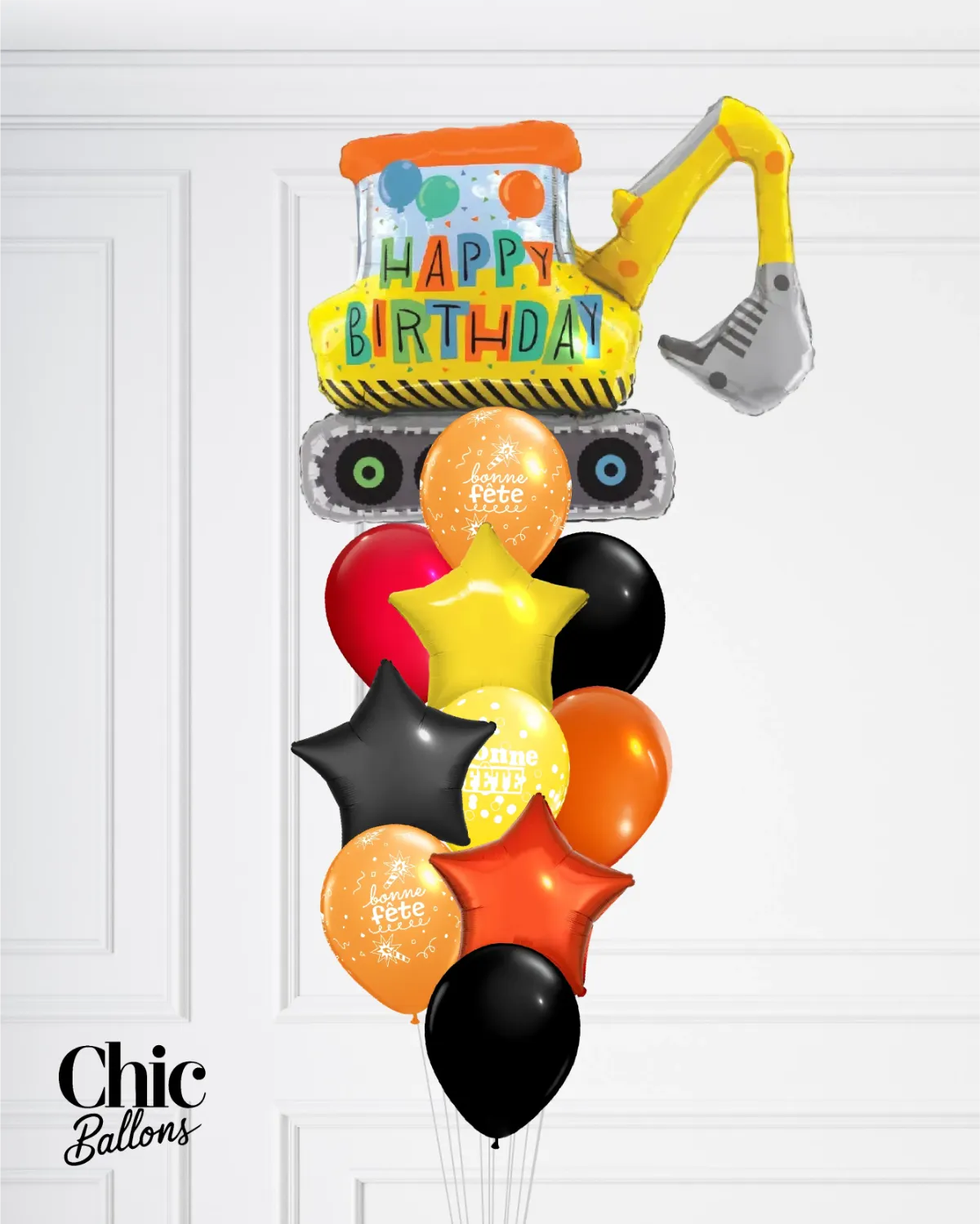 Ajoutez une touche robuste et amusante à votre fête avec notre bouquet de ballons Construction ! Selon la taille sélectionnée, il peut inclure un gros ballon en forme de pelle mécanique de construction, accompagné de ballons aux teintes éclatantes de orange, noir, jaune et rouge. Parfait pour une fête sur le thème des chantiers ou des véhicules, ce bouquet apportera une ambiance dynamique et pleine d’énergie à votre événement ! Vérifiez ce qui est inclus ou non dans chaque taille de bouquet.