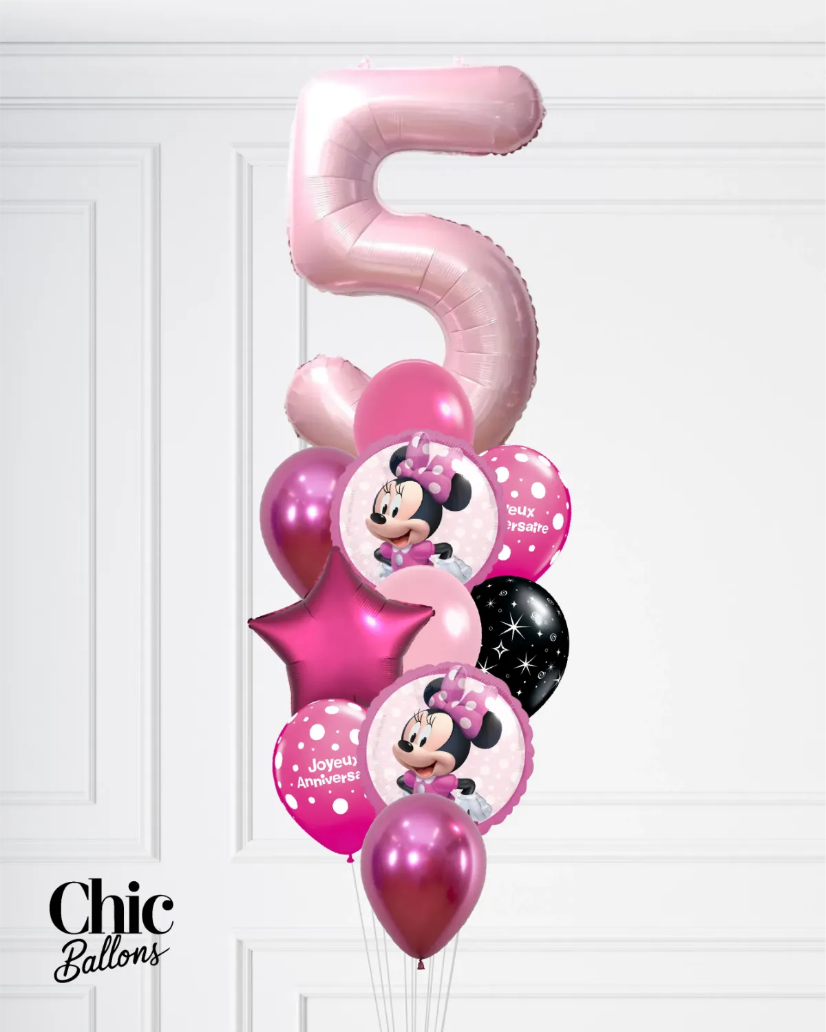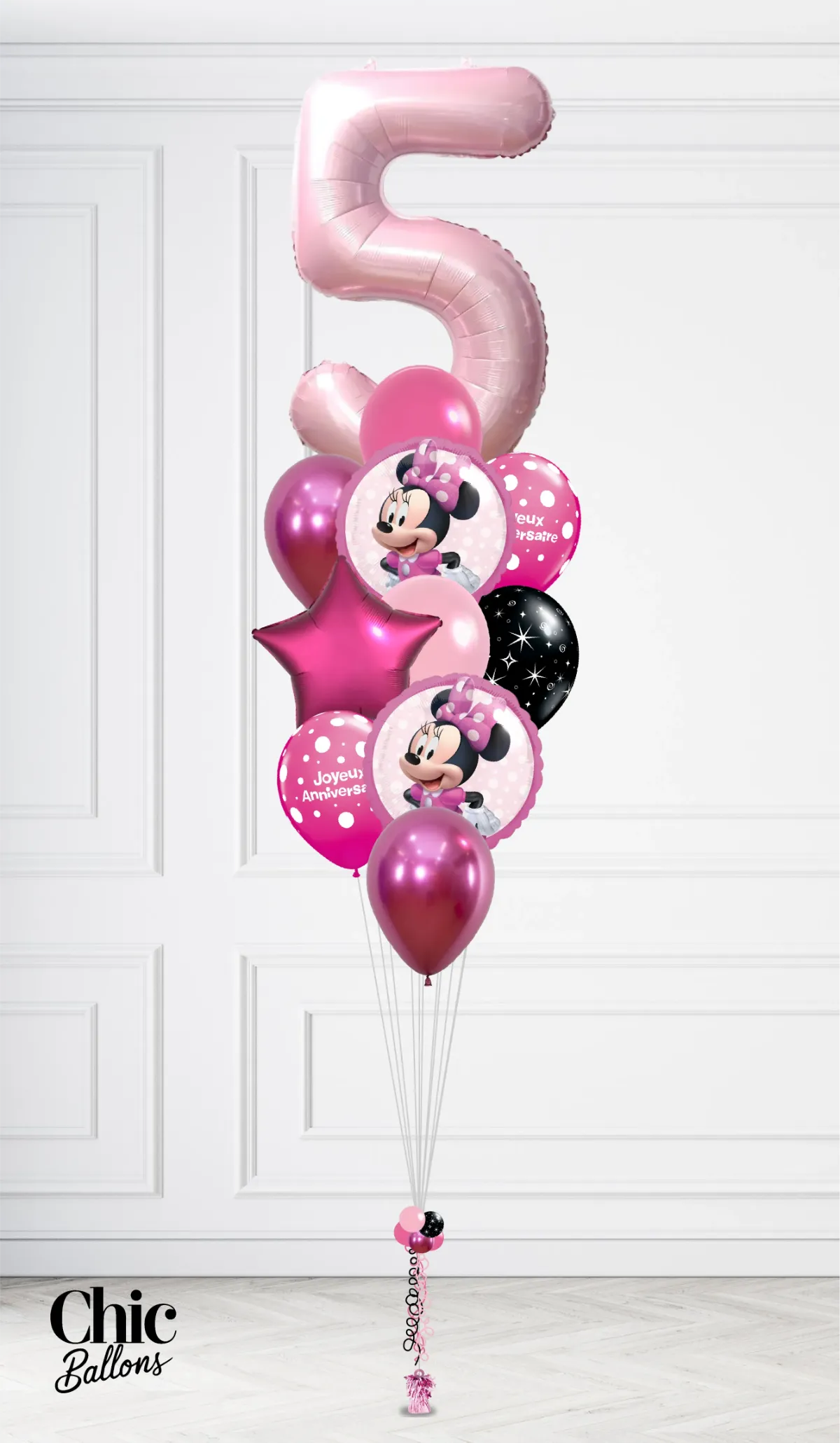 Ajoutez une touche adorable à votre fête avec notre bouquet Minnie Mouse ! Selon la taille sélectionnée, il peut y avoir un gros chiffre rose de 34", deux ballons Minnie Mouse, des étoiles fuchsia, ainsi que des ballons dans les teintes de noir, fuchsia et rose. Ce bouquet charmant apportera une ambiance joyeuse et colorée à votre célébration ! Vérifiez ce qui est inclus ou non dans chaque taille de bouquet.