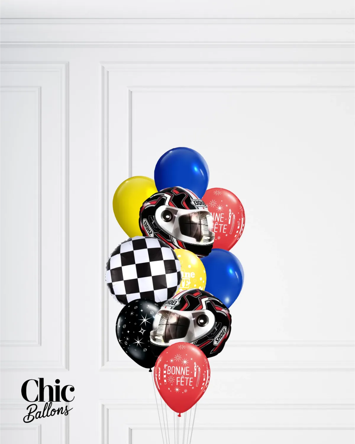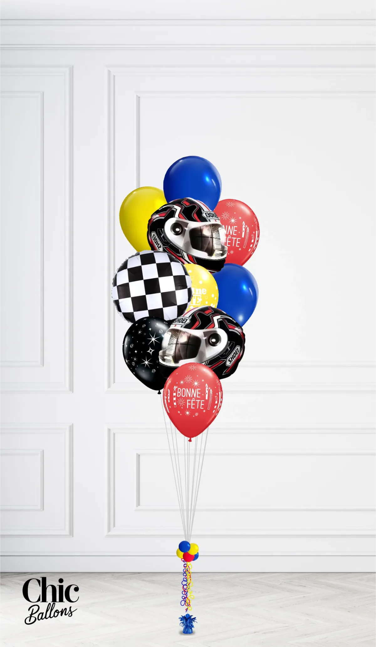 Mettez les gaz pour une célébration pleine de vitesse avec notre bouquet de ballons Moto ! Selon la taille sélectionnée, il peut inclure deux ballons de 18" en forme de casques de moto, un ballon de course à motif carreauté noir et blanc, le tout complété par des ballons dans les teintes dynamiques de bleu, rouge, jaune et noir. Idéal pour les passionnés de moto et de sensations fortes, ce bouquet apportera une touche énergique et sportive à votre fête ! Vérifiez ce qui est inclus ou non dans chaque taille de bouquet.