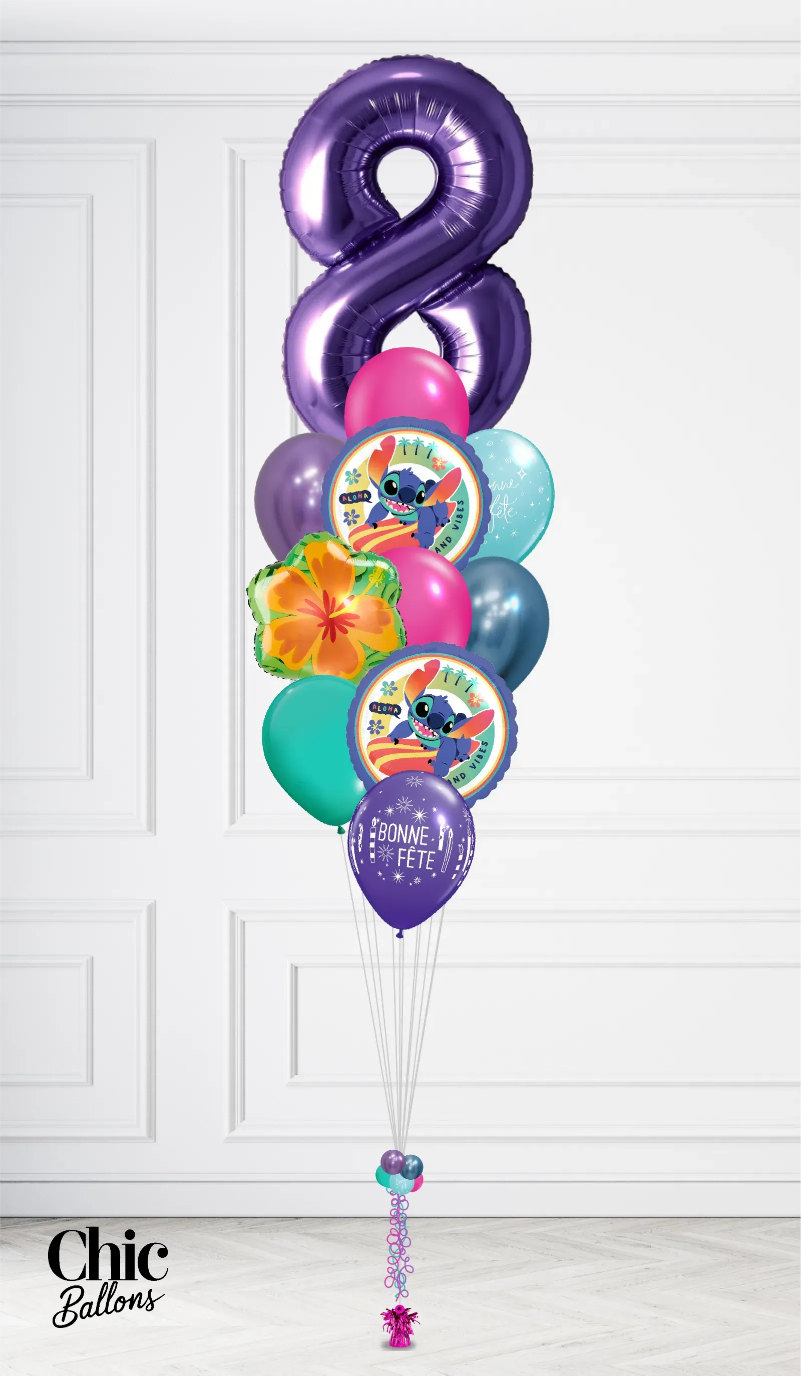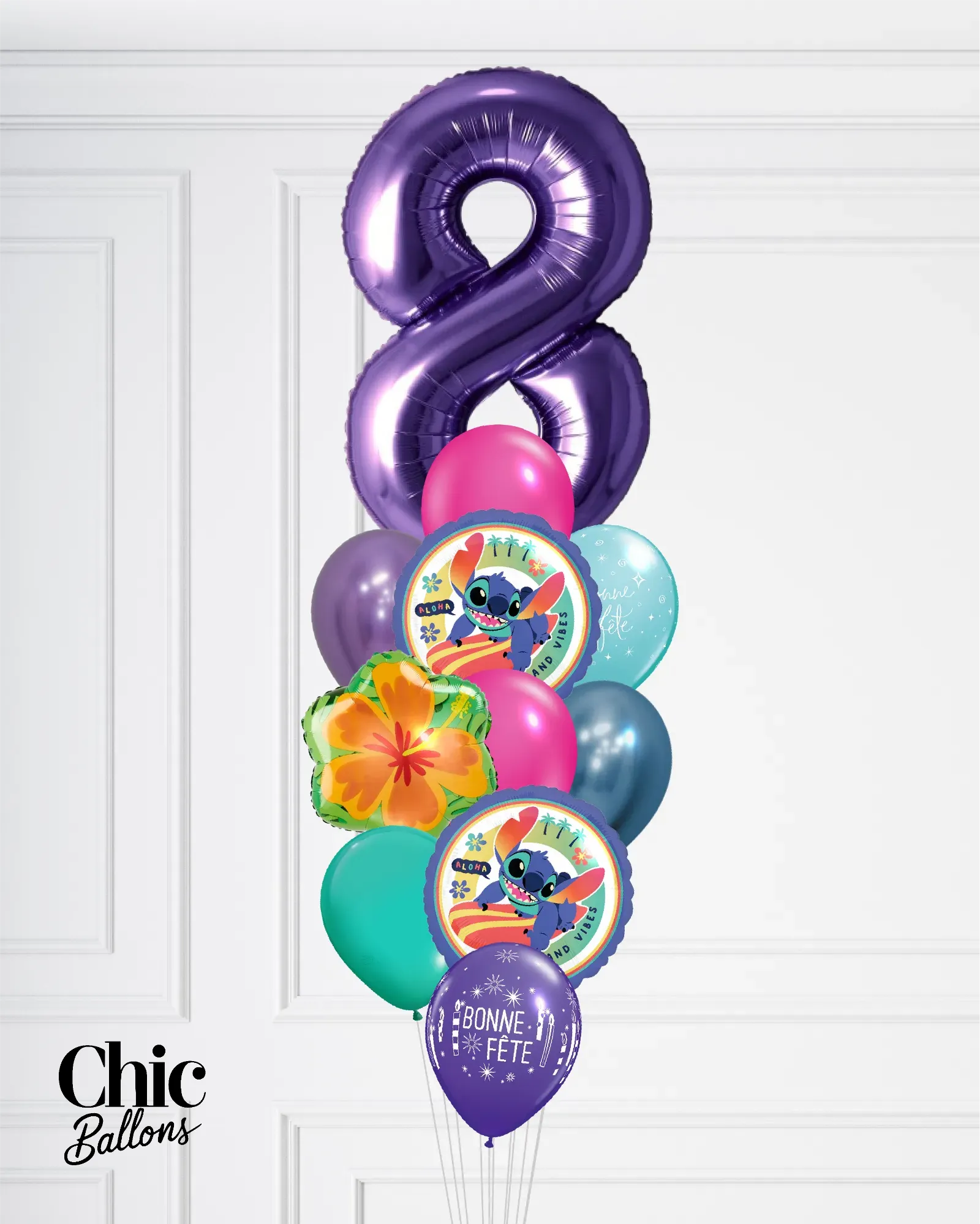 Bouquet de ballons - Stitch avec chiffre