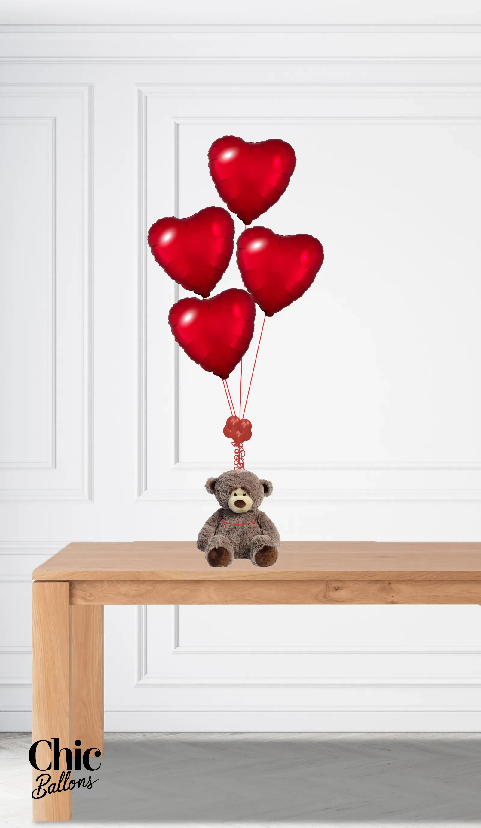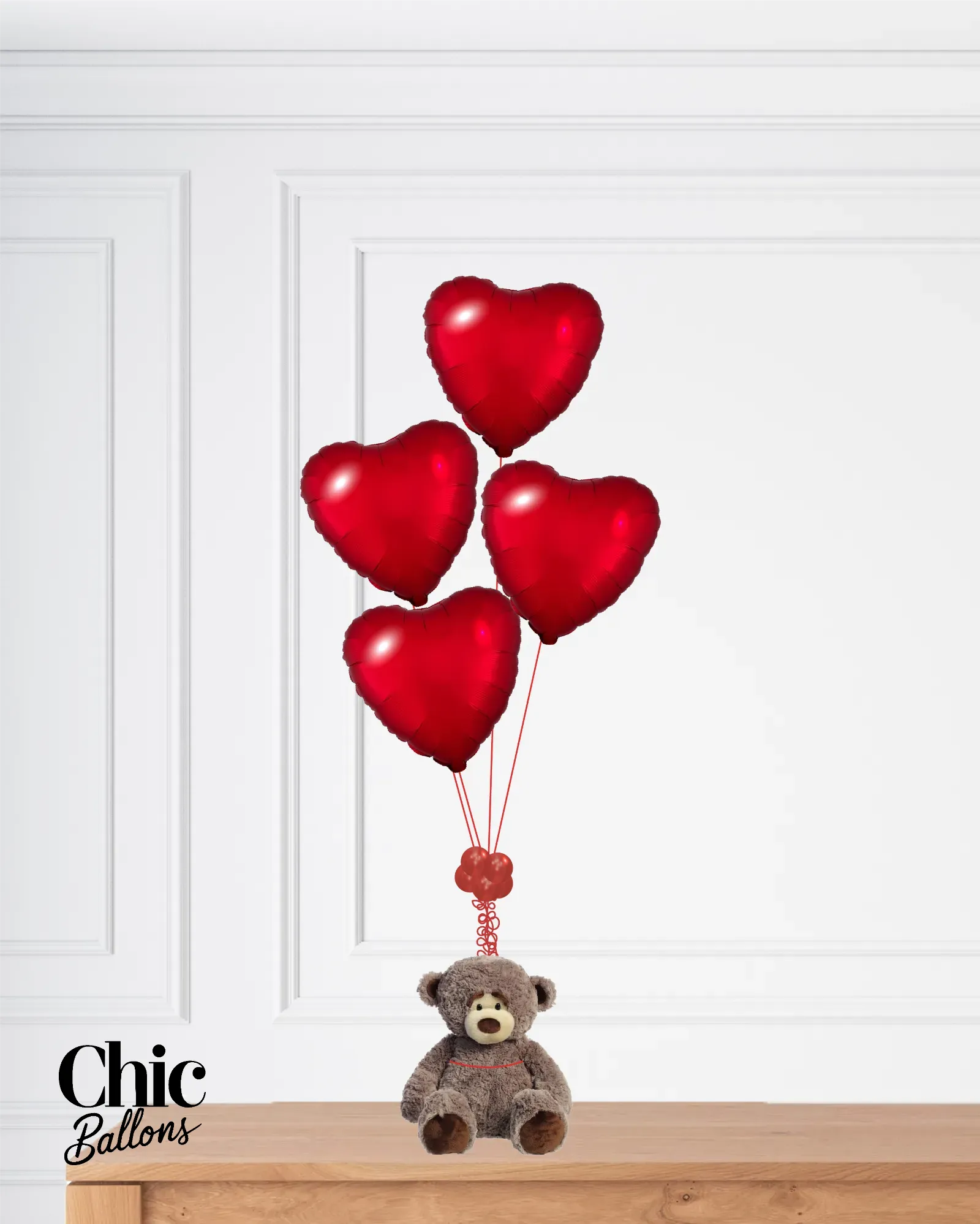 Bouquet de Saint-Valentin - 4 ballons et ourson