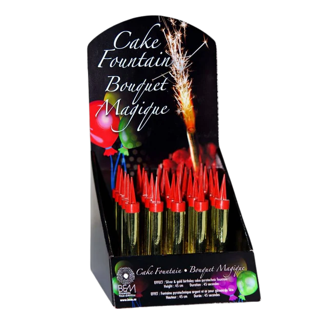 Ajoutez un ou plusieurs bouquets magiques en remplacement ou en complément des chandelles sur le gâteau d'anniversaire pour créer un véritable feu d'artifice de joie et de magie !