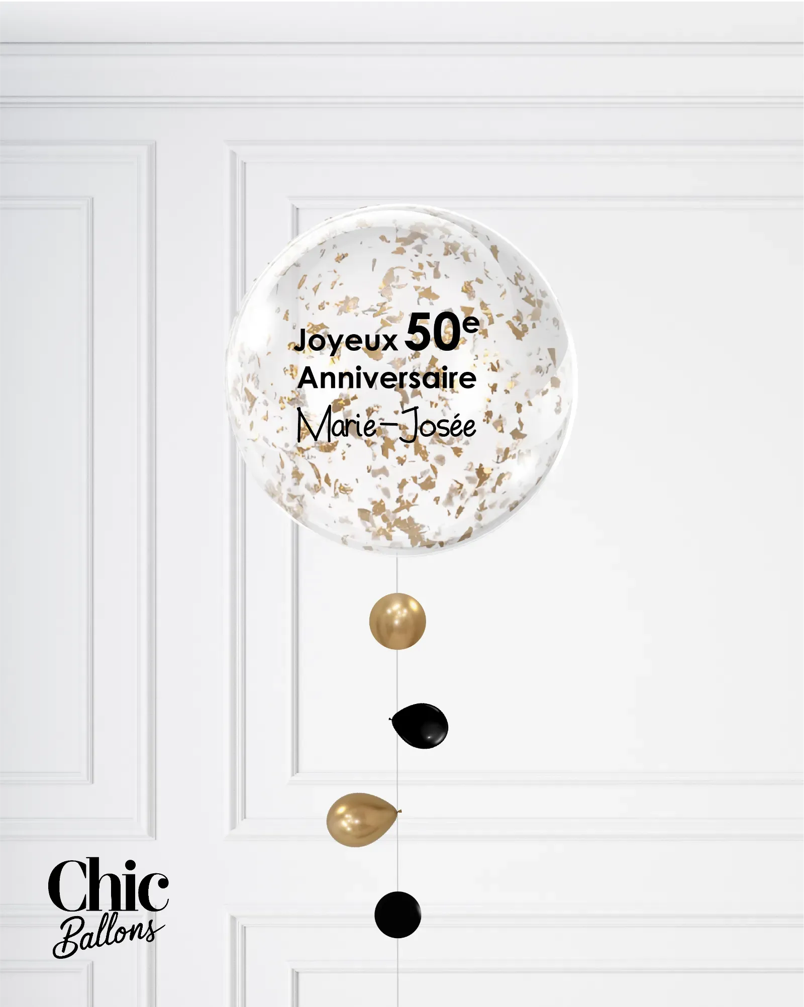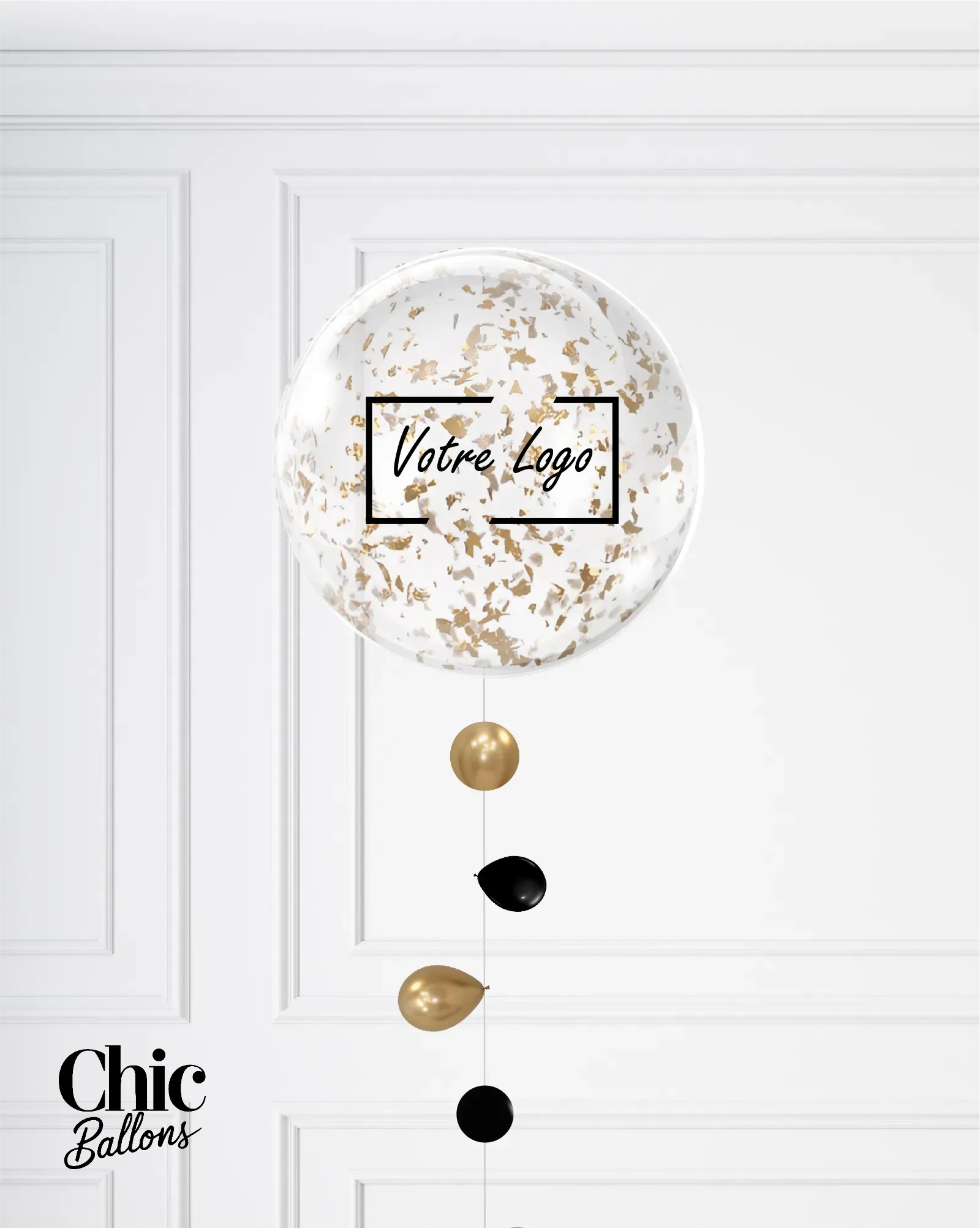 Ajoutez une touche de glamour et de sophistication à votre événement avec ce ballon de 24 pouces transparent, rempli de paillettes scintillantes à l'intérieur. Le montage inclut des ballons de 5 pouces dans les teintes élégantes de or et noir, créant une ligne décorative raffinée et chic jusqu'à la base. Parfait pour les fêtes de fin d'année, les événements d'entreprise ou toute occasion spéciale, ce ballon apportera une ambiance festive et lumineuse tout en offrant un visuel spectaculaire qui captivera l'attention de tous vos invités.