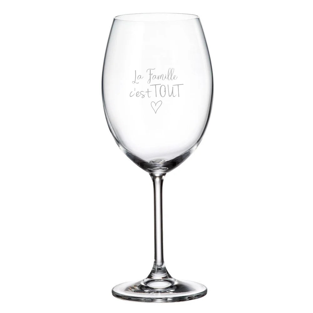 Coupe à vin avec l'inscription : La famille c’est TOUT