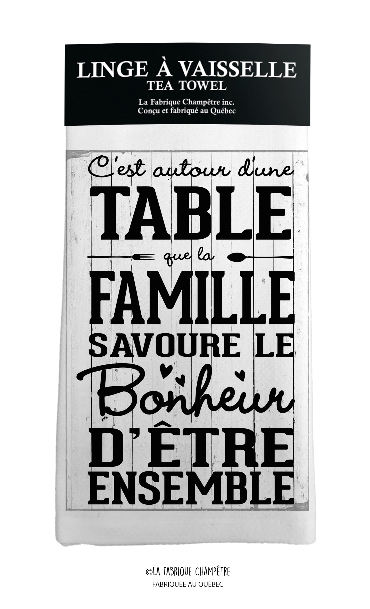 Linge à vaisselle "C'est autour d'une table que la famille savoure le bonheur"