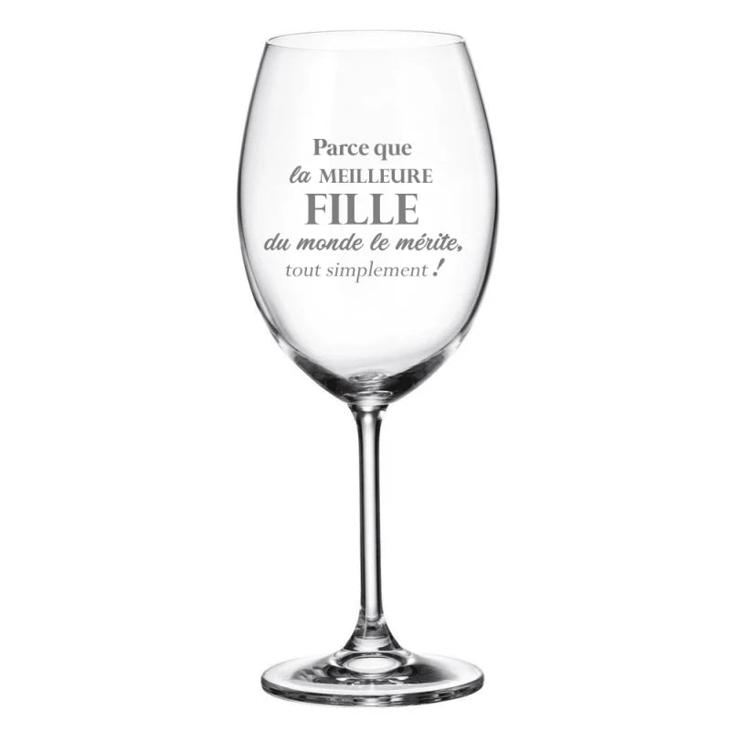 Coupe à vin avec l'inscription : Parce que la meilleure Fille