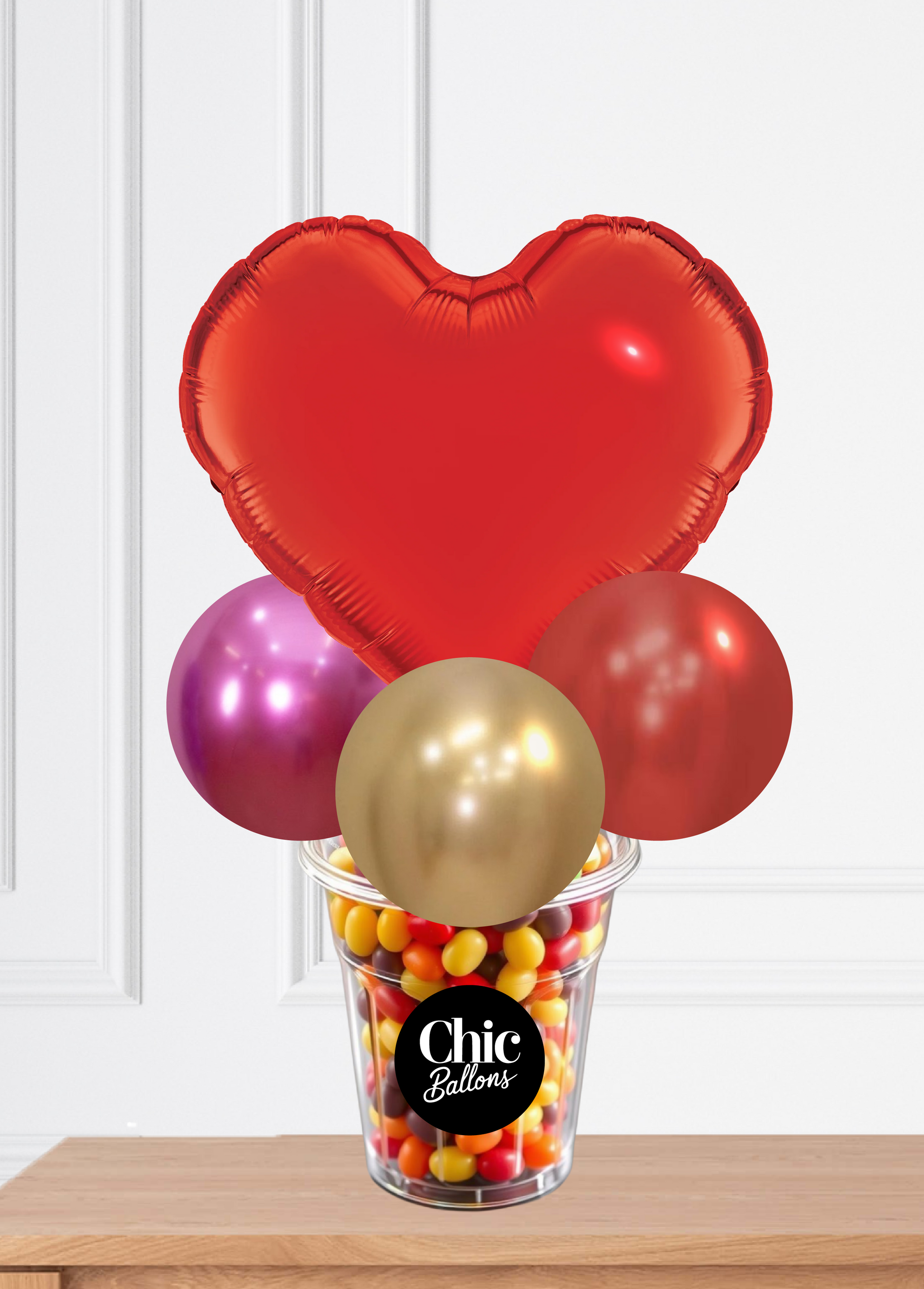 Offrez une touche gourmande et festive avec ce verre rempli de jujubes frais assortis (sucrés et sans sucre, 250 g), accompagné de 4 élégants ballons en latex de 5 po. Couronné d’un ballon d’environ 9 po personnalisé avec le personnage ou la forme de votre choix, c’est le cadeau parfait pour émerveiller et ravir petits et grands!